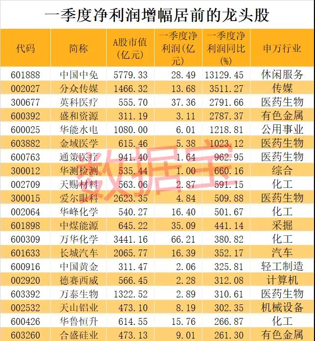 业绩暴增龙头股名单来了