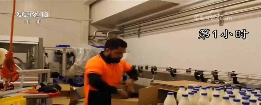 以乳业大国新西兰为例:一瓶保质期15天的新西兰进口鲜奶,曾经只是检验检疫通关就要耗费8天。消费者花了大价钱,却错过了鲜奶的最佳赏味期。但如今,同样的一瓶鲜奶,最快第3天就能出现在中国超市的货架上,不用再面临“上架就过期”的窘境。那么,这瓶进口鲜奶是如何以飞一般的速度来到中国的呢?2018年首次进博会期间,CCTV播出的一段视频,揭秘了一瓶新西兰鲜奶的奇幻漂流生涯。4.新西兰鲜奶3天抵达上海第1小时,拥有3万头奶牛的新西兰牧场开始一天的挤奶工作,鲜奶开启到巴氏杀菌、灌装、装箱等加工过程。
