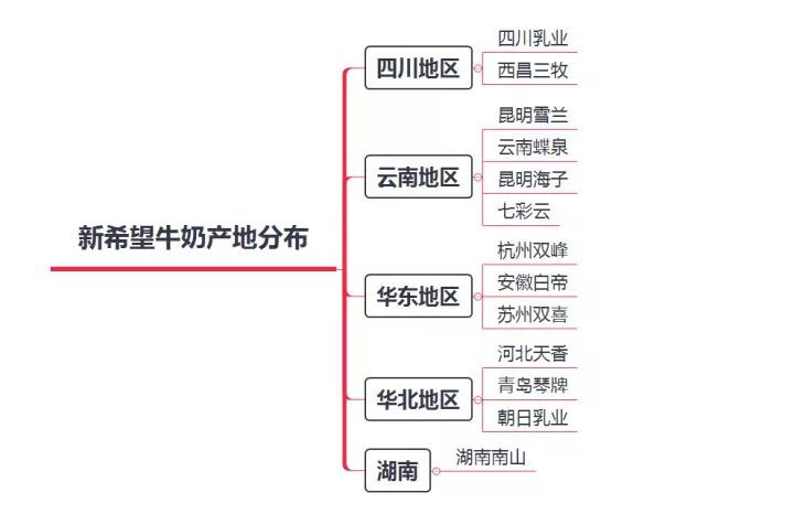 到了2015年,双喜被刘永好旗下的新希望乳业收购,企业名称也变成了新希望双喜乳业(苏州)有限公司。至此,又一家老牌地方性乳企被纳入新希望版图。新希望乳业曾经是新希望集团旗下上市公司平台新希望六和的资产,在2011年被剥离出上市公司。新希望乳业的主营业务为乳制品及含乳饮料的研发、生产和销售。公司的产品主要包括低温鲜牛奶、低温酸奶、低温调制乳、低温乳饮料、常温纯牛奶、常温乳饮料、常温调制乳、常温酸奶及奶粉等9大类。其中,低温奶产品销售占比高达58.18%。行业人士评价,低温或将成为新希望乳业撬动乳制品市场格局的杠杆。4. 为何坚持低温路线?在伊利、蒙牛等常温奶仍然在中国市场占据主流的当下,新希望为何偏偏要走“低温”战略?遥想十多年前,随着伊利、蒙牛的常温奶的崛起,中国最早形成的各个区域乳企以巴氏低温鲜奶占领市场的格局被打破。保质期只有一个礼拜的巴氏奶,要求低温保存、冷链运输,但乳企又没有那么多钱,在每个城市都建设牧场、加工厂去生产巴氏奶,就只好生产可以长久保存、长途运输的常温奶,这就出新了“北奶南运”的局面,正基于此,光明、三元当年的霸主地位,在短时间内,被蒙牛、伊利超越。新希望想进入牛奶业,最好的办法是收购现成的牛奶企业。但它没有能力收购蒙牛伊利这样的大企业,于是它专门挑软柿子捏,于是,安徽白帝就成了它的首个收购对象,至此一发而不可收。当前新希望在四川、河北、江苏、浙江等省已控股了13家乳制品生产型子公司。刚刚提到的苏州“双喜”牛奶,就是新希望旗下的。杭州的“双峰”也是,通过不断买买买,新希望乳业最终成为国内奶制品的一匹“黑马”。