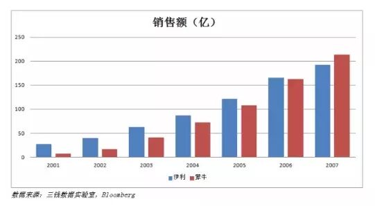 时间到了2005年,“超级女声”响遍大江南北,蒙牛也凭借张含韵的“酸酸乳”含乳饮料,知名度一路窜升。直到2007年,蒙牛销售额首次超过老大哥伊利,牛根生做到这一点,只用了8年。