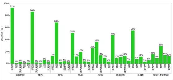 【图】大包粉进口金额月度变化从进口区域来看,主要乳制品进口来源地集中在新西兰、澳大利亚、欧盟国家和美国。新西兰是中国乳制品进口的第一大来源国,德国逐渐成为中国液态奶进口的第一来源国,美国为中国进口乳清粉的第一大来源国,澳大利亚在奶粉、黄油、奶酪和鲜奶等产品上也依然保持着重要的地位。