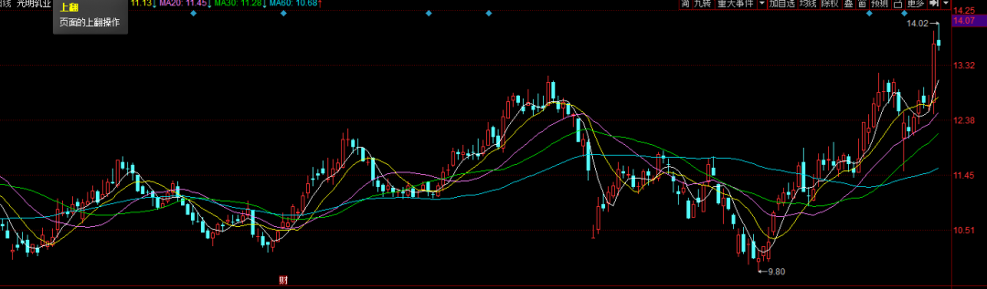 “每天一杯奶,强壮中国人”,很多原本不喝牛奶的人,为了健康也开始接受牛奶。超市里,奶制品销量永远不愁。牛奶可以搭配早餐和下午茶,可以在逛街时与茶混合为奶茶,可以给咖啡的苦涩增添奶香,还以各种表现方式出现在我们的日常生活。笔者小时候,上海似乎只有光明牛奶,订购的用户每天早上去弄堂口牛奶店领取。光明乳业对于上海,甚至是整个长三角的朋友来讲都有着特殊的意味。而奶味十足的光明冰砖,更是热天难忘的回忆。但是近年来,由于种种原因,光明乳业在资本市场上的表现一直不太尽如人意,管理层也经历了多轮动荡。不过近期的光明乳业股价,终于没有辜负“老粉丝”的期待,走出了一波上涨行情。就在5月13日收盘,光明乳业更是大涨超8%,盘中一度触及涨停: